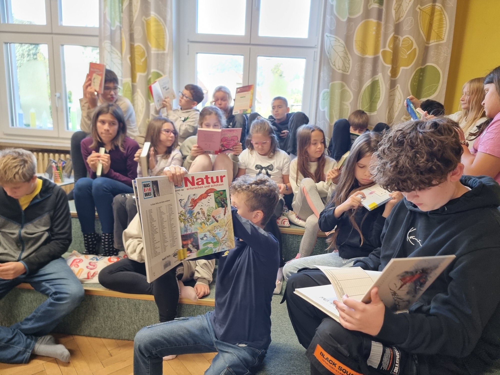 Die 1.a Klasse lernt die Schulbücherei kennen. [...]
