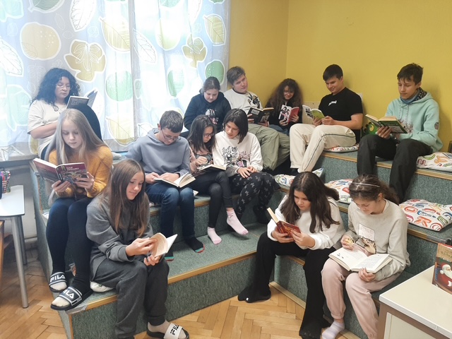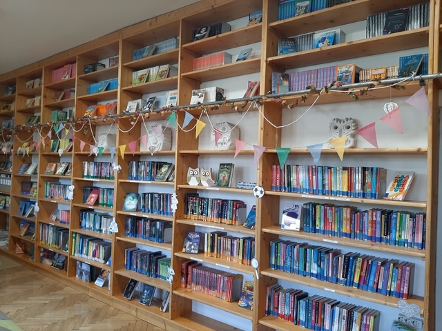 Unsere gemütliche Lesetreppe bzw. die Leseecken laden dazu ein, in Ruhe zu schmökern, während die moderne Ausstattung bestehend aus zwei Räumen genügend Platz für das gemeinsame Lernen und Spielen bietet. Besonders stolz sind wir auch auf unseren jährlich stattfindenden Vorlesekalender im Advent. Dieses Angebot erfreut sich Jahr für Jahr großer Beliebtheit, denn alle interessierten Schülerinnen und Schüler bekommen in der Vorweihnachtszeit täglich eine Winter- bzw. Weihnachtsgeschichte von einer Lehrerin oder einem Lehrer vorgelesen.