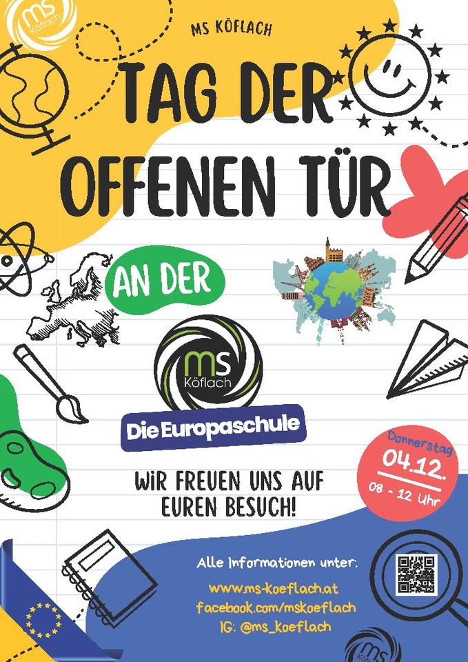 An diesem Tag könnt ihr bei uns in die Klassenzimmer hineinschnuppern und den Unterricht an der MS Köflach hautnah erleben.
