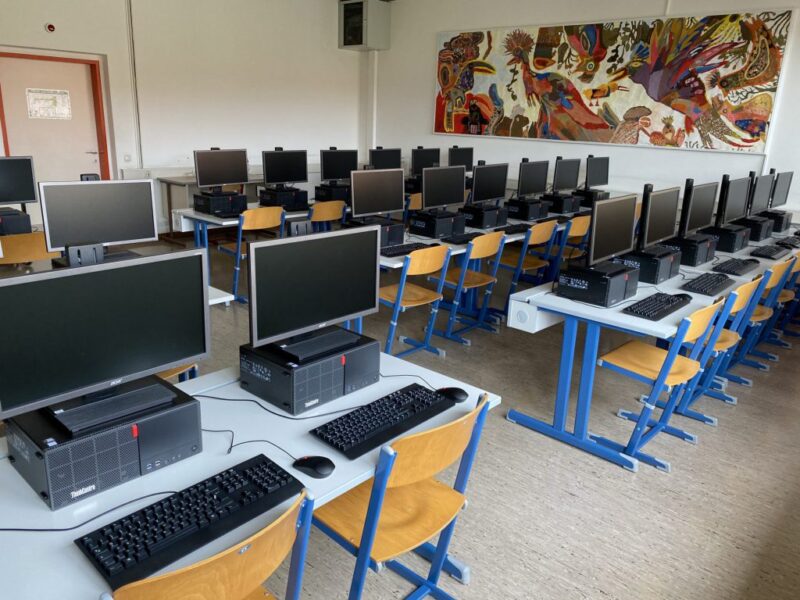 Unsere beiden Computerräume sind auf dem letzten technischen Stand. Ausgestattet mit Breitbild-Bildschirmen, Computern der neuesten Generation und schneller Internetanbindung können wir unseren Schülerinnen und Schülern einen optimalen Einstieg in den digitalen Alltag bieten.