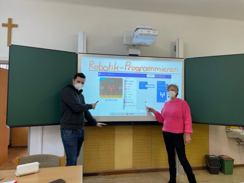 Fast alle unserer Klassen sind bereits mit interaktiven Tafelsystemen ausgestattet. Smartboards werten den Unterricht durch die vielfältigen Einsatzmöglichkeiten erheblich auf. Ob Konstruktionen im Mathematikunterricht, interaktive Landkarten in Geografie oder grafisches Programmieren in Robotik – die Smartboards sind eine Bereicherung für alle Unterrichtsgegenstände.