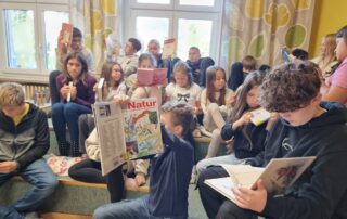 Die 1.a Klasse lernt die Schulbücherei kennen.