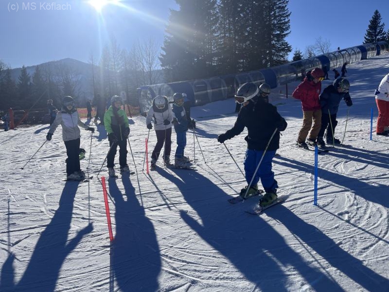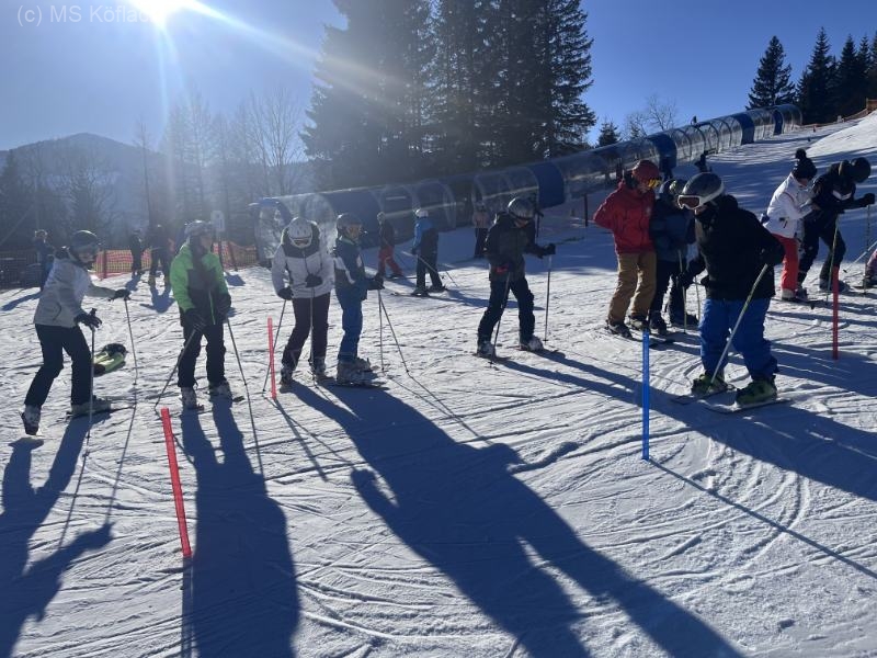 25 SchülerInnen und 4 Lehrer wagten das Abenteuer Schikurs. Bei traumhaftem Wetter, blauem Himmel und Sonnenschein erlernten alle Anfänger das Schifahren. Der Rest konnte sein Können im Schilauf verbessern. 2 Schüler eroberten den Berg mit Rutschteller und Sessellift.