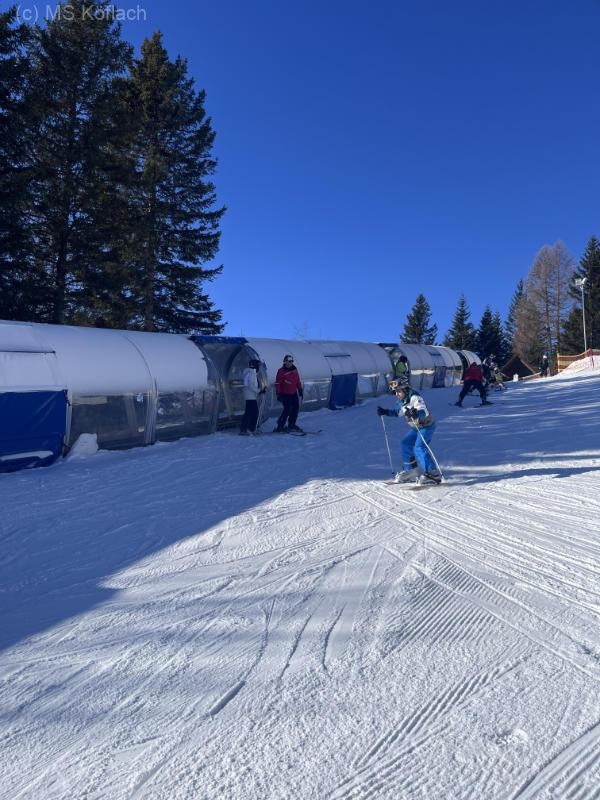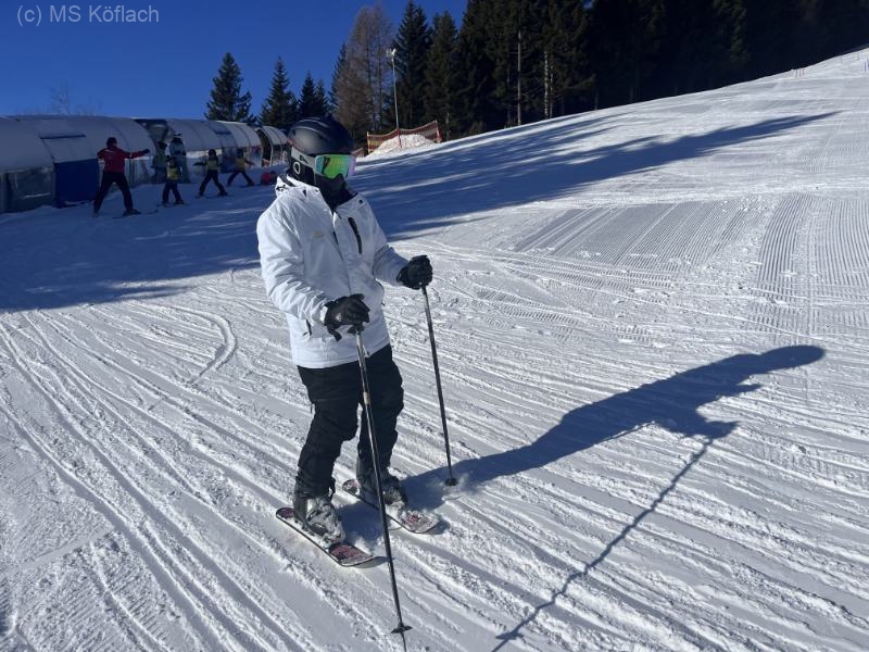 25 SchülerInnen und 4 Lehrer wagten das Abenteuer Schikurs. Bei traumhaftem Wetter, blauem Himmel und Sonnenschein erlernten alle Anfänger das Schifahren. Der Rest konnte sein Können im Schilauf verbessern. 2 Schüler eroberten den Berg mit Rutschteller und Sessellift.