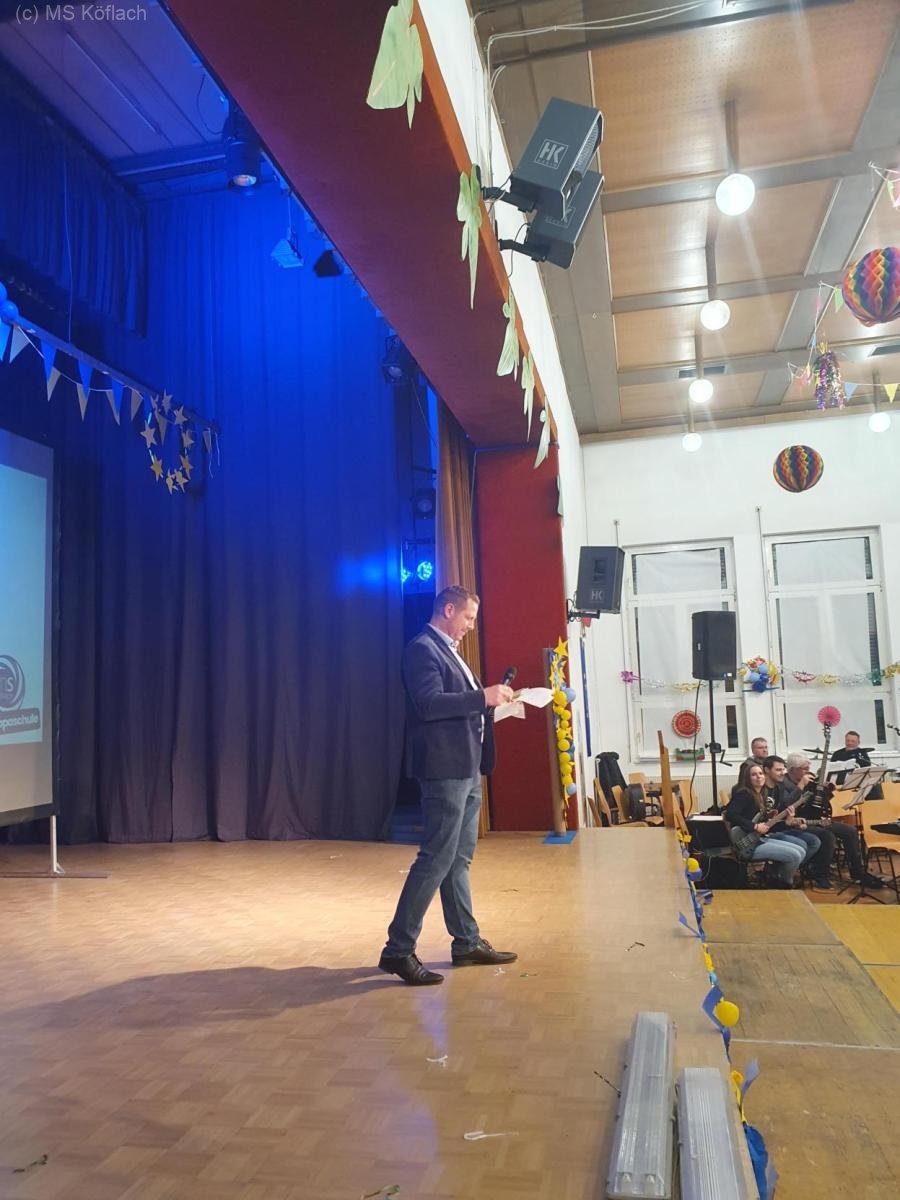 Für zusätzliche Stimmung sorgte die Lehrerband. Unter den zahlreichen Gästen befanden sich neben Eltern auch Ehrengäste, darunter Bürgermeister Mag. Helmut Linhart, der sich sogar spontan an einem Sketch beteiligte und damit für besondere Lacher sorgte.